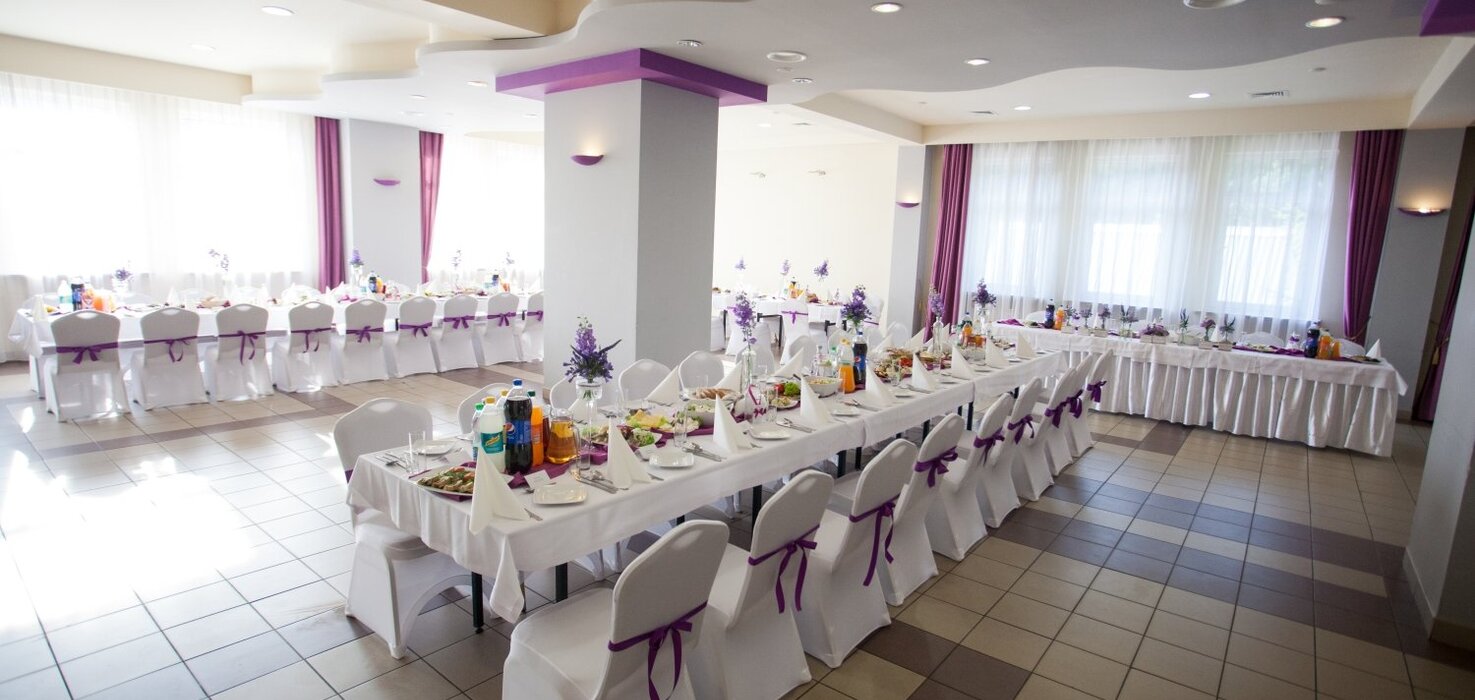W Hotelu Przedwiośnie zorganizujemy przyjęcie weselne do 240 osób. Nasz personel pozostaje do dyspozycji od pierwszych momentów planowania przyjęcia. Służymy radą w wyborze menu, kwiatów, dekoracji stołów.